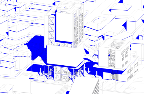 Tot ansamblul este construit deasupra unui magazin Lidl deja existent pe sit, căruia i s-au atribuit alte funcțiuni.