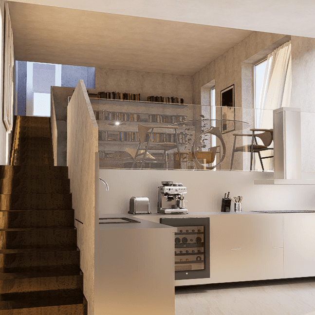 Proiectul își propune realizarea unui ansamblu rezidențial format dintr-un bloc turn, o bibliotecă pe mai multe etaje legată de clădirea principală prin pasarele și o unitate de locuire comunitară (cohousing) realizată din etaje parțiale și pasarele. Structura turnului este combinată (diafragmă din beton armat și structură metalică). Apartamentele, începând cu etajul 5 al turnului sunt împărțite în trei module construite tip raumplan.